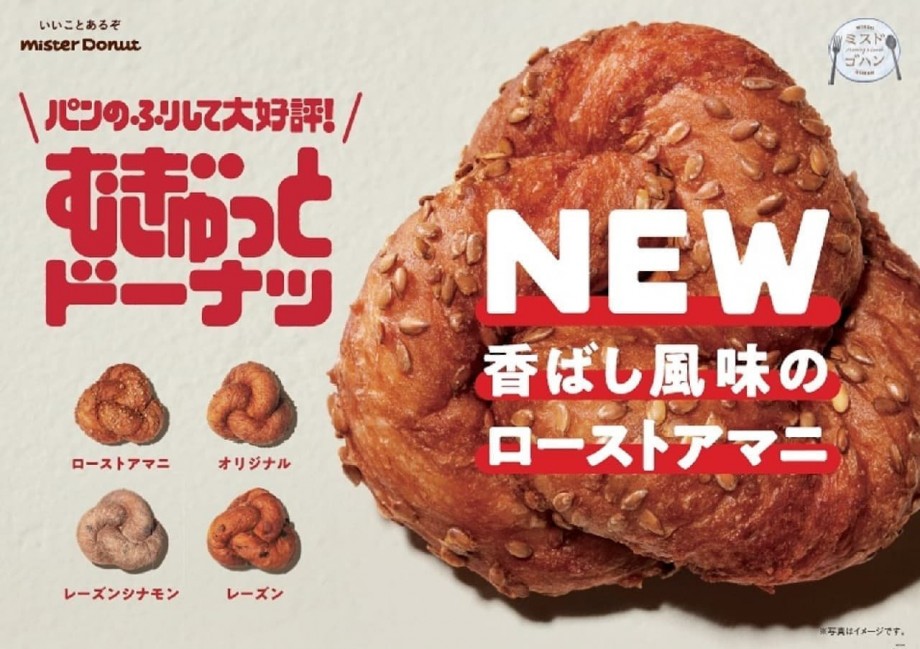 ミスタードーナツ各店で、「むぎゅっとドーナツ ローストアマニ」が10月8日より販売される。あわせて、「むぎゅっとドーナツ3個セット」も販売される。