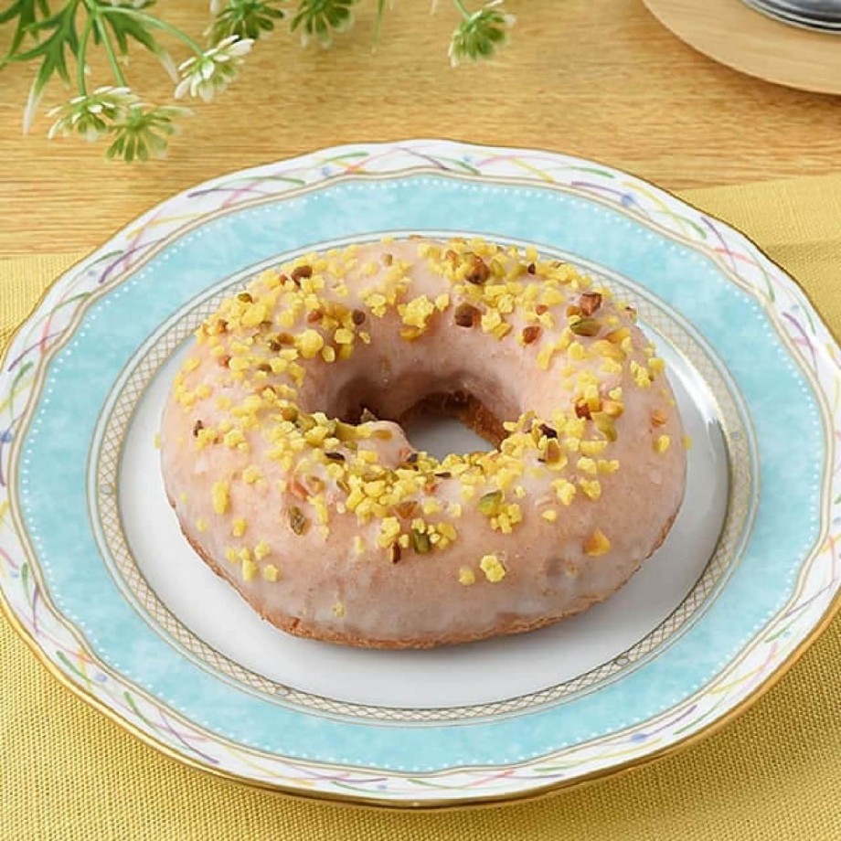 レモンピールとレモン果汁が練り込まれたケーキドーナツに、ほどよい酸味のあるレモン味のシュガーコーティングをかけ、バター風味クランチとピスタチオをトッピングして仕上げた。