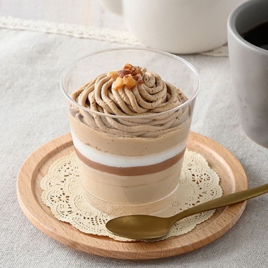 2種類の栗(イタリア栗・和栗)を使用したモンブラン。モンブランクリームや和栗のペーストといった異なるかたさのクリームなどと、サクサク食感のメレンゲを加えた、味と食感の変化が楽しめる仕立て。