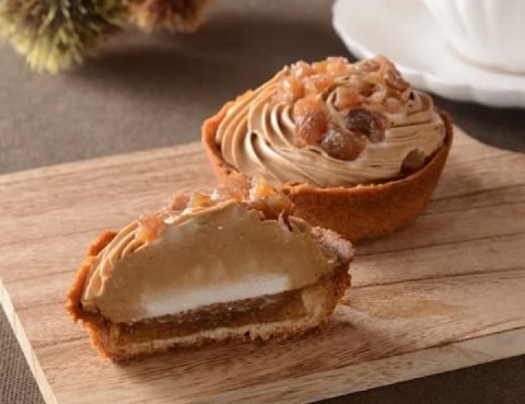 栗の食感を楽しむ、マロングラッセをトッピングしたタルト。246円。