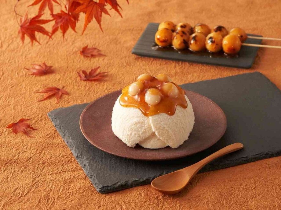 香ばしいみたらし団子の味わいを楽しめる和スイーツアイス。ソースはコク、香り、旨みに優れた3種類の醤油をブレンド。さらに昆布エキスを入れ、甘味処で食べるみたらし団子のような旨みのある味わいに仕上げている。ソースをアイスの上だけでなく、おもちの上からもかけ、見た目もみたらし団子に近づけたのもこだわり。