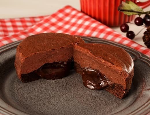 とろ~りとしたショコラチーズクリームを濃厚ショコラチーズケーキで包み込んだ、冷たくても温めても美味しいチーズケーキ。