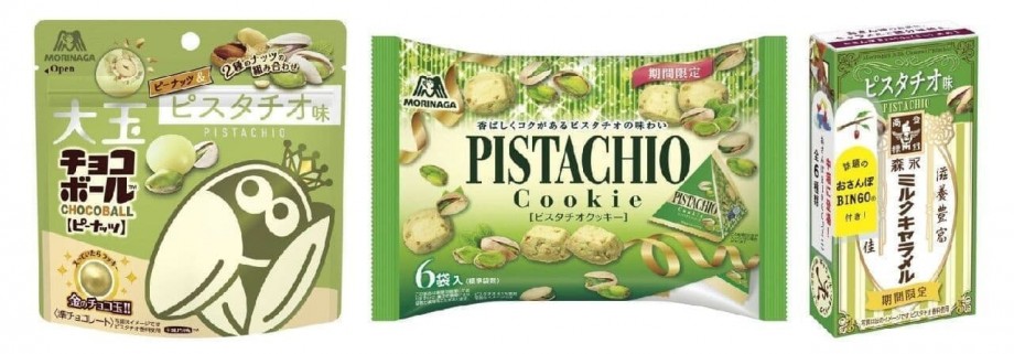 森永製菓「大玉チョコボール<ピーナッツ>&ピスタチオ味」「ピスタチオクッキー」「ミルクキャラメル<ピスタチオ味>」 (参考記事: えん食べ)