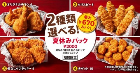 ケンタッキー「2種類選べる!夏休みパック」!-- 組み合わせ自由で2,000円