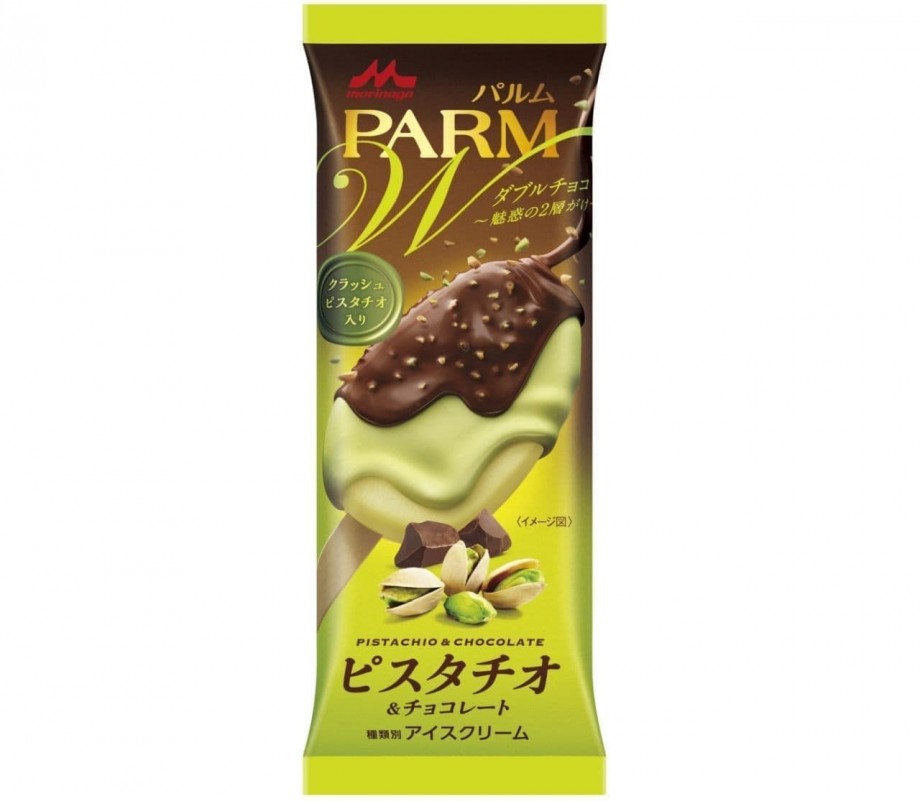 森永乳業から、バーアイス「PARM(パルム)ダブルチョコ ピスタチオ&チョコレート(1本入り)」が10月4日より販売される。200円(税別)。
