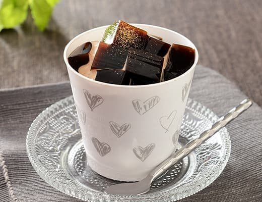 ブラジル産アラビカ種を使用したコーヒー入りの風味豊かなゼリーと、くちどけのよいショコラクリーム、チョコブラウニーが入ったカップ入りのケーキ。