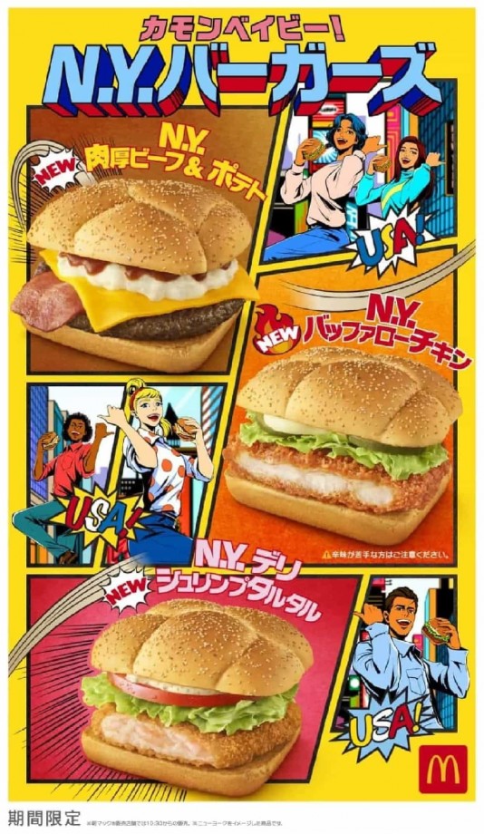 マクドナルド新作「N.Y.肉厚ビーフ&ポテト」「N.Y.バッファローチキン」「N.Y.デリ シュリンプタルタル」ニューヨークをイメージした “カモンベイビー!N.Y.バーガーズ” (参照記事: えん食べ)