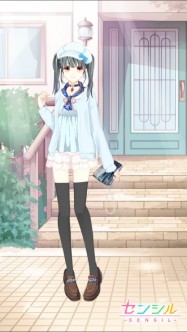 水色コーデ。カーデからはみ出しているのは御愛嬌。
