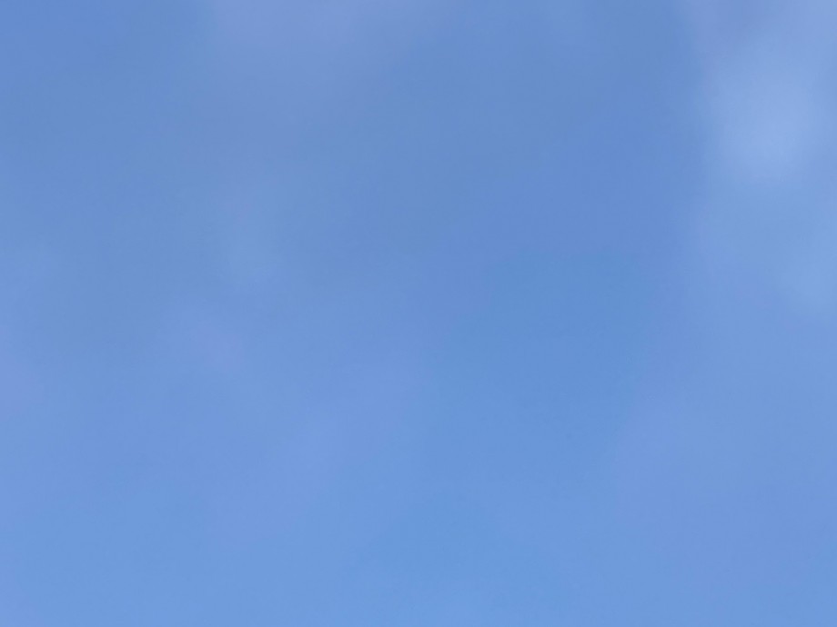 今朝は所々薄雲の浮かぶ空で、雲の間から朝日が差してきています。