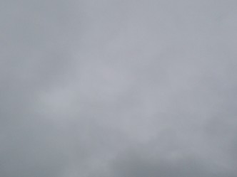 雨雲に覆われ小雨が降り続く朝