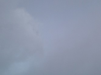 今朝は灰色の雲に覆われた寒々とした空から雪が少し降っています。