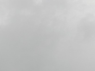 今朝は灰色の雲に覆われ、やや強く雨が降っています。