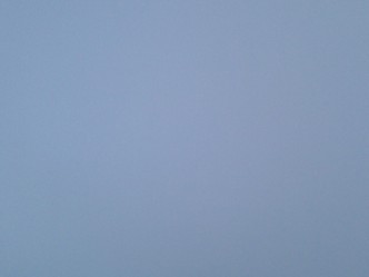 今朝は雲に覆われた空で、周囲に立ち込めた靄と混ざり合って見えます。