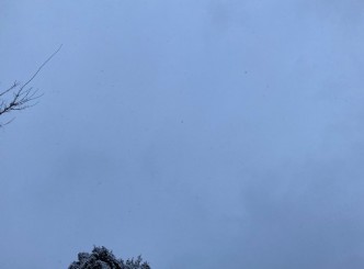 今朝は灰色の雲に覆われ、小雪が降り続いて、1センチほど積もっています。