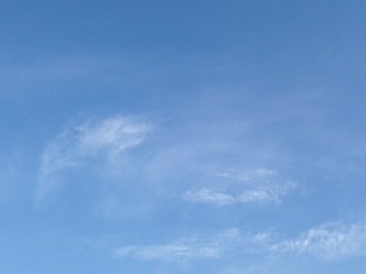今朝は晴れて薄い雲の浮かぶ青空が広がっています。