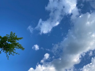 濃い青空に所々雲が浮かぶ今朝の空