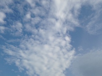 今朝は雲が多いものの青空が所々に見え、うろこ状の雲が浮かんでいるところもあります。
