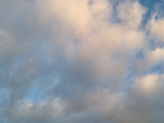 雲が多く浮かんでいますが、陽が射して明るい朝