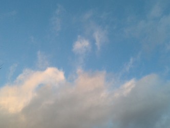 今朝はまとまった雲が多く浮かんでいるものの、その間から陽が射してきています。