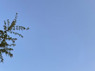 今朝はよく晴れて、雲のない青空が広がっています。