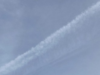 今朝は広く薄い雲がかかり、筋状の雲も浮かんでいます。