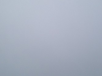 今朝も灰色の空から小雨が降っています。周囲に靄も少しかかっています。