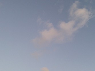 今朝は広く青空が見えて、雲がほんのり朝焼けに染まって見えます。