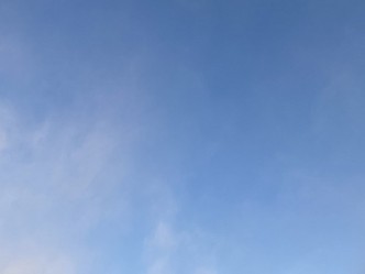 今朝は薄い雲の切れ間から青空が見えて、空が明るくなってきています。夜に少し雪が降ったようで、薄っすらと辺りが白くなっています。