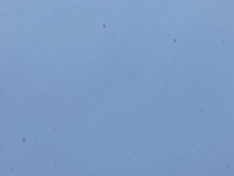 今朝は灰色の空から小雪が降り続いて、地面が白くなっています。