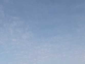 今朝は薄い雲のかかる青空が広がり、朝日が射してきています。