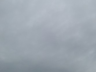 今朝は灰色の雲に覆われた空で、少し靄も立ち込めています。