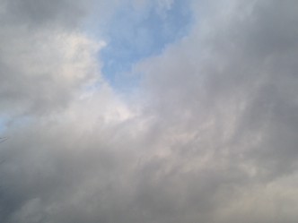 今朝は雲が優勢の空で、雲の間から青空が少し見えています。
