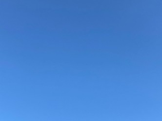 今朝は広く青空が見えて、朝日が差しています。