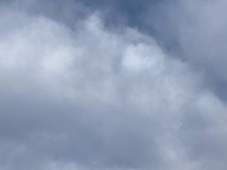 今朝は灰色の雲が広い範囲に浮かんでいます。