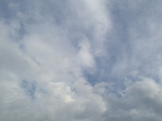今朝は雲の多い空で、少しだけ青空が見えます。