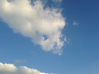 今朝は晴れて、青空に所々雲が浮かんでいます。