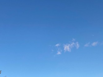 今朝はよく晴れて、雲のほとんどない青空が広がっています。