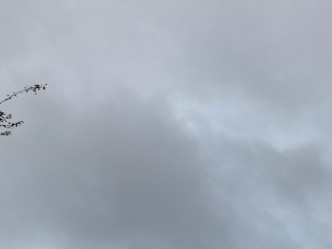 雨雲が広がり、ぽつぽつと雨が降る朝