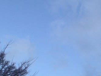 今朝は夜に雪が少し雪が降ったようで薄く雪が積もっています。今朝の空は薄い雲が所々浮かんで、青空の部分が多く見えています。