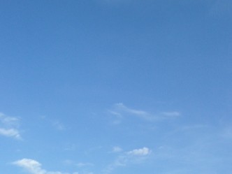 今朝は晴れて、青空に薄い雲が所々浮かんでいます。