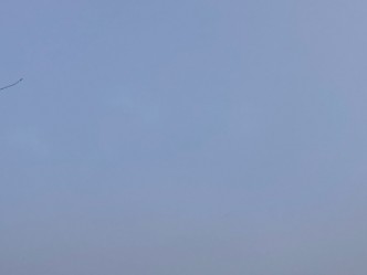 今朝は曇り空で、周囲の靄が立ち込めて白くなっています。