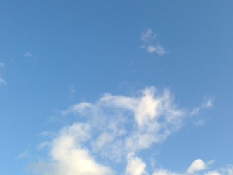 今朝は晴れて青空に小さな雲が所々浮かんでいます。