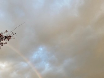 陽が射して虹が出ている今朝の空