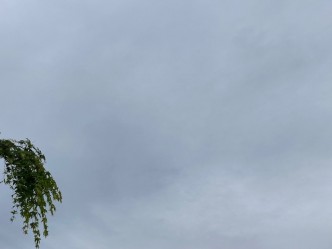 今朝は雨があがって、やや厚い雲が広がっています。