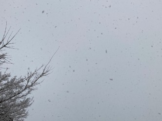 今朝は寒々とした曇りの空から、しんしんと雪が降っています。