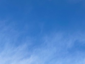 今朝は広く薄い雲が浮かんで、その間から青空が見えています。