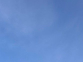 今朝も晴れて、少し薄雲のかかる青空が広がっています。
