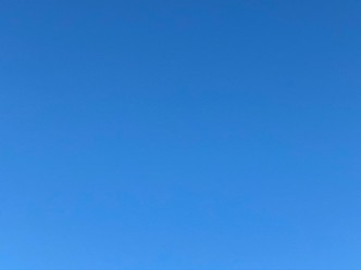 今朝は広く青空が見えて、朝日が差しています。