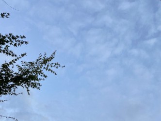 今朝は薄い雲が所々に浮かび、その間から青空が見えています。