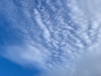 今朝はまだらな雲が広い範囲に浮かんでいます。